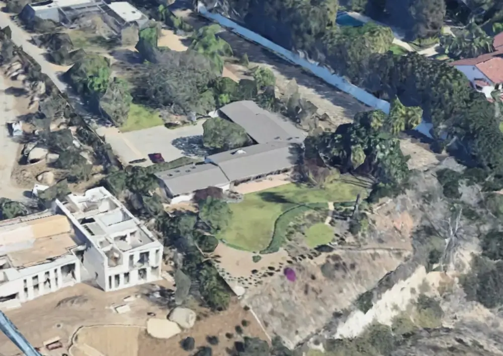 地图显示,她收购的这处房产建于20世纪50年代,L形房屋,占地约4英亩。拥有4间卧室和4间浴室,穿过门前的草坪就能直接俯瞰悬崖和海滩,风景非常优美。