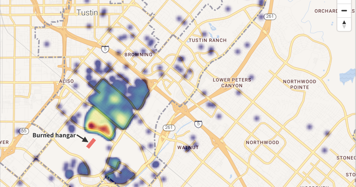 Tustin机库火灾中的有毒物质散落在橙县多个地区,包括尔湾